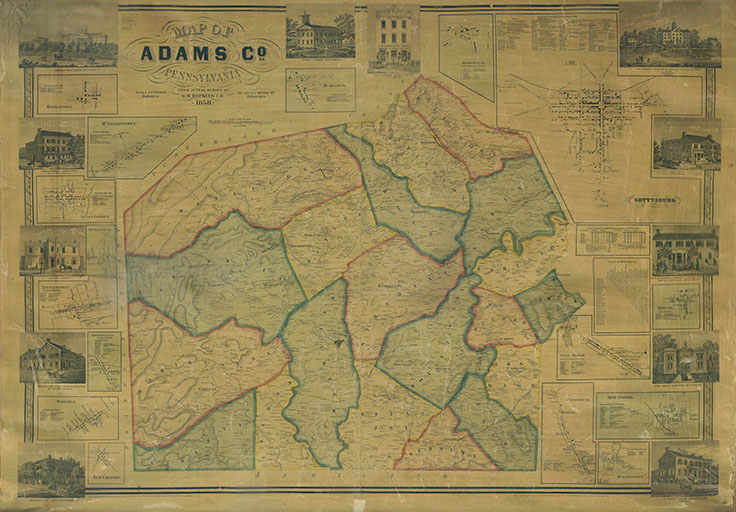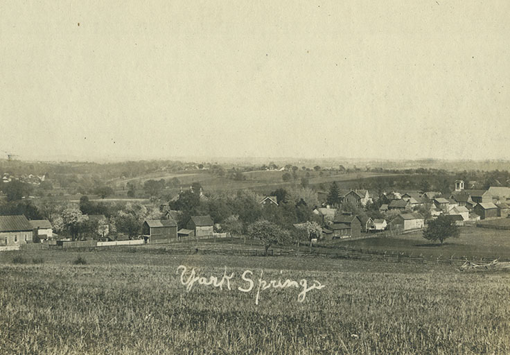 The borough of York Springs is located on the eastern line of Huntington Township on the Carlisle and Hanover road, west of the Sulphur Springs, and on a branch of Latimore Creek. The village was plotted in 1800 and named Petersburg in honor of Peter Fleck. Mr. Fleck's cabin was the first home built and his store was the first mercantile venture. There are 56 springs in the borough.
