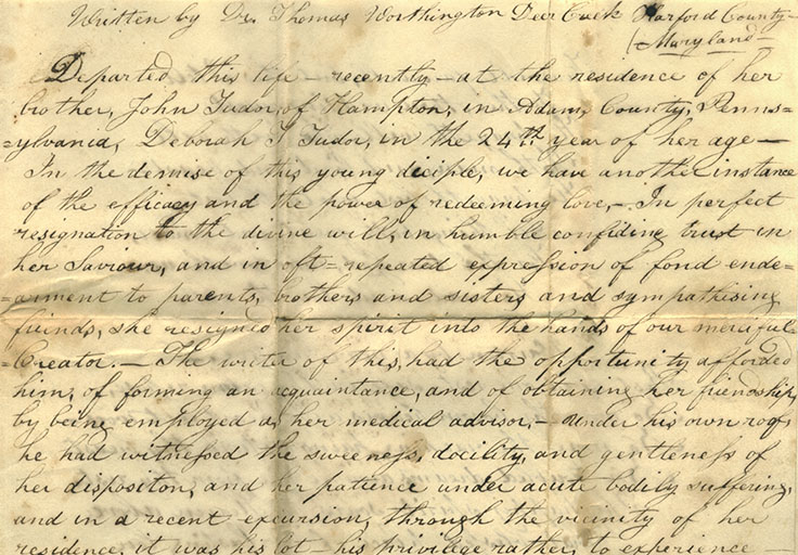 Departed this life...Deborah T. Tudor, in the 24th year of her age...