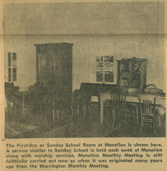 one can see that Quakerism is still living and that Menallen Meeting is an outstanding contrast to the almost inactive Quaker Meetings of Redlands, Warrington and Huntington, all of which, have been subjects of TIMES features.
